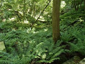 初めてみました!w(^o^)w その後、さらに歩き… 山道から、開けたエリアに、するとーーー 一面に シダ植物の群生がーーーーー!!! ![]() 「恐竜が出てきてもおかしくなさそうな景色ですね?!」