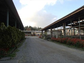何だろうと思いながらゆっくりゲートをくぐると、 ショワワワワ~~~!!! ゲートから消毒液がーっ!!(注意書き見たのに) 一同ビックリッッ!!(注意書き見てたのに) 良かった、窓閉めといて・・・。(寒い季節でよかった) 道の両サイドには牛舎があります。 チーズ工房、本当ニココデアッテイルノ?? と疑問を抱きつつ、そろりそろりと車を進めて行くと・・・ ほっと安心の看板発見!! ![]() 自信満々で看板を右に曲がると、ありました!