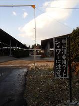 ![]() 「車両消毒用ゲート シャワーに注意」???