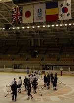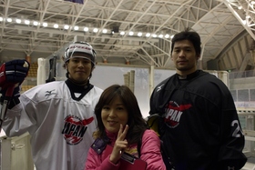 2012年11月9日(金曜日) Game#1 14:00 イギリス - 韓国 Game#2 18:00 日本 - ルーマニア 2012年11月10日(土曜日) Game#3 14:00 ルーマニア - イギリス Game#4 18:00 日本 - 韓国 2012年11月11日(日曜日) Game#5 14:00 韓国 - ルーマニア Game#6 18:00 イギリス - 日本 詳しくはこちら 日本アイスホッケー連盟公式サイト http://www.jihf.or.jp/ へ。 ↓↓こちら、アリーナの中へ入ると、日本代表が練習をしていました。 すごい熱気ですっ ![]() 今回インタビューさせて頂いたのは、上野拓紀選手(写真右)と、寺尾裕道選手(写真左)。