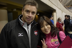 取材の時に、私、口が回らなくて噛んじゃったのね。そしたら寺尾選手がフッと笑って、それを見た上野選手がその腕をつっついて「笑っちゃ悪いよ」って感じでふんわり笑ってくれたんです。 このちょっとした仕草から、二人の仲の良さや信頼関係が伺えて、日本代表の全体のチーム力に、期待大、ですっ! ガンバレニッポン!! そしてもう御一方。インタビューさせて頂いたのは、日本代表監督のマホン・マーク監督。アイスバックスの監督もされていた方です。 チームの仕上がりも良く、久しぶりに日光のファンにお会いできるのを、とても楽しみにいているそうです。 是非、みんなで霧降アイスアリーナへ行って応援しましょう!! ![]() |