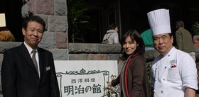 とうとう、憧れの場所「明治の館」さんへ行くことができたわっ 写真は紅葉まっさかりの明治の館、敷地内のお庭。 まだ赤く染まっていない緑のもみじもあったから、まだまだ紅葉も楽しめるわ! 私、嬉しくて皆さんにご報告があるので、先に言っちゃう! 「明治の館」さんからプレゼント頂きました! 「ニルバーナ」(サイズは大)を抽選で3名様にプレゼントします。 応募は、番組HP「プレゼントの応募」ボタンをクリック、「ニルバーナ欲しい」と書いてメッセージを送ってください。(応募の締切は、11月21日(木)まで) ![]() 取材のこの日、「明治の館」は大変なにぎわいでしたので、取材後にサービスで頂いた名物エビ入りオムライスは、隣接する「明治の館 別館 遊晏三房」でいただきました。