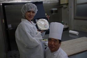チーズケーキ「ニルバーナ」!! お話しを伺ったのは、創業者のお孫さんであり総支配人でもある和智士郎さん(写真左)と、 工場長の樋口保男さん(写真右)。 ![]() ■和智総支配人からは「ニルバーナ」の名前の由来を教えて頂きました。