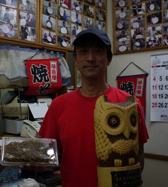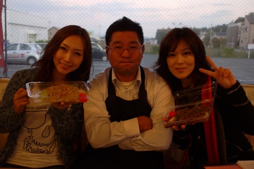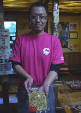 実はこの2つのお店。それぞれが3冠王(優勝回数が3回でなれて、もしどちらかが勝てば、初の殿堂入り)をかけた真剣勝負なのです! まずは宇都宮の「ばそきや」さん。焼きそば専門店です。 基本のもっちもち麺にソース味。ここに当日発表されるまで分からない、優勝をかけたトッピングがのって、勝負をかけます。 ちなみにこちら、一昨年、昨年と引き続いての3年連続優勝を目指しています。 店長さんの、優しい瞳の奥の闘志を見よっ 味に自信アリ、です。 ![]() 対するこちら、「晃のや」さん。夕方から営業の居酒屋さんですが、特に人気の焼きそばが話題になり、このお祭りへの参加を決めたそう。