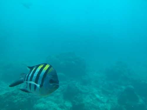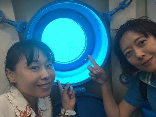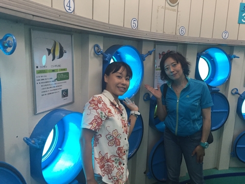 第03回テーマ「ブセナ海中公園~後編:海中展望塔~」先週は、このコーナーのリスナープレゼントを提供して下さっている「ブセナ海中公園」で、「グラス底ボート」を体験した模様をお送りしました。沖縄本島・北部の名護市にある「ブセナ海中公園」は、高級リゾートホテルの「ブセナテラス」に併設された施設。 船底が透明なガラスになっているボートで20分のクルーズが楽しめる「グラス底ボート」、そして水深5メートルの海の中を観察できる「海中展望塔」で、エメラルドグリーンの海と、熱帯魚たちの泳ぐ姿を、服を来たまま楽しむことができる人気スポットです。 ということで今週は「グラス底ボート」と並ぶ「ブセナ海中公園」のもう一つの目玉、「海中展望塔」をエンジョイした模様をお聴き頂きました! ![]() ご案内してくれる、ブセナ海中公園の徳村さんと一緒に長~い、桟橋を渡ります。風が強~い ![]() 螺旋階段を下っていくと、いきなりニモ(クマノミ)がお出迎え ![]() 潜水艦のような窓を覗くと沢山のお魚がすぐそばを泳いでいますよ~ ![]() 塔の周りを泳ぐ魚達、沢山の種類がいて、いつまで眺めていても飽きませんでしたね~。魚の紹介パネルもありますので、大人も子供も楽しく沖縄の魚達を知ることができますよ~。 ここ「ブセナ海中公園」で、「海中展望塔」と「グラス底ボート」が2名まで無料になる特別チケットを、抽選でご応募頂いた方から毎月30名様にプレゼントしていますので、今すぐ応募してみて下さいね♪ ます! 「冬でも楽シーサー沖縄」、来週からは国立公園に制定された慶良間諸島の旅の模様をお送りします。お楽しみに! ![]() |