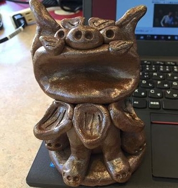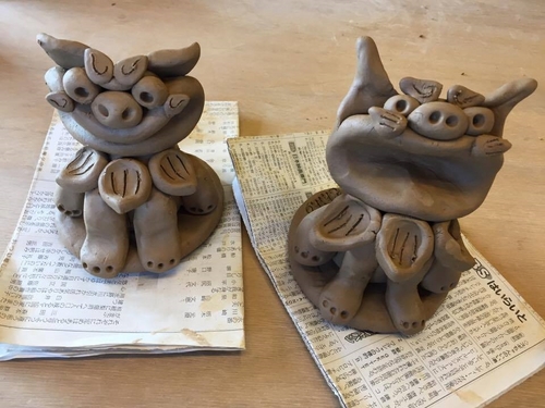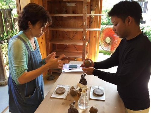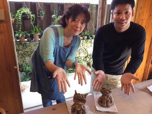 ご紹介しました!響きがユニークな「やちむん」とは、沖縄の素材と伝統的な技法で作った焼き物のことで、「育陶園」さんでは、シーサーや、大小様々な唐草模様の陶器を形成し、販売していました。取材では、高江洲若菜さんに「やちむん」について教えてもらった後、体験工房で「立ちシーサー作り」にチャレンジしてみました! ![]() 土台と丸い4つの粘土の球を先生に教わりながら組み立てていきます ![]() 右が千帆作、左が先生のお手本。意外と上手くできていそう!? ![]() 焼きあがるには時間がかかります。さて~、焼き上がりはどうなる! ![]() こちらが先日、沖縄から届いた完成品。これから栃木の鹿島田家の守り神となります。 こちらの体験も楽しいですが、お店で販売されている陶器も「育陶園」独自の唐草模様が本当に美しく、魅力的でした。スタッフも思わず購入しちゃったのが白いグラス!ぜひ、那覇に訪れた際には、お店に訪れてみて下さい! ![]() |