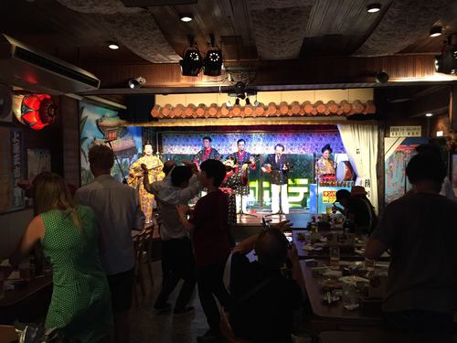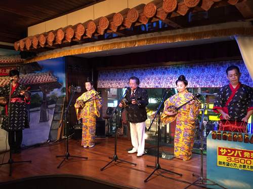 第08回テーマ「上原正吉の店【島唄ライブ ナークニー】」![]() 4週に渡って「慶良間諸島」での旅の模様をお送りしてきたこのコーナーですが、今週からは那覇市内での取材の様子をお届けしますよ。 そして今回は、那覇市国際通りにある居酒屋さん「上原正吉の店【島唄ライブ ナークニー】」をご紹介しました。国際通りには、沖縄の民謡生ライブが味わえるお店がいくつかあるんですが、「ナークニー」は『沖縄で知らない人はいない』という民謡歌手・上原正吉さんのお店で、一日に4回、店内で伝統民謡やカバー曲のステージを開催してくれています。 ![]() ステージでは、正吉さんを始めとした歌手の方の歌声や三線の音色で伝統的な沖縄の民謡の世界も楽しめますし、正吉さんのお孫さんで「ミス沖縄」の経歴を持つ唯さんが最新のヒット曲の「海の声」をカバーしてくれたり、お客さんも合いの手やダンスで一緒に楽しむことができて、充実したステージでした。 ![]() 鹿島田アナも絶賛の美女・唯さん。「おじいちゃんとおばあちゃんは小さい頃からテレビで見ていた人。そんな2人とステージに立てるのは私の特権。沖縄の民謡の魅力を外に伝えていきたい」とお話してくれました。 ![]() お料理も味あわせて頂きまして「ゴーヤチャンプルー」や「ヘチマの味噌炒め(ナーベラー)」など、どれも絶品でしたよ。ぜひ、ご家族でお気軽に遊びに行ってみて下さいね♪ ![]() |