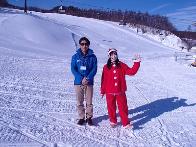 ご家族でお越しの方や、ご年配の方も元気に楽しまれるこちらのイベント。 クリスマス直前ということで…カップルの皆さんにもぜひお勧めですね♪ さらに他にもOPEN記念のオススメイベントがあります! 明日20日(土)~26日(金)までの一週間は「オープニングサービスウィーク」!! 1日券を購入された方に、12/27~1/12まで有効の1日券がプレゼントされます。 レンタル利用者はセット・フルセットを半額でサービスされる、お得な1日券となっていますよ~! そして20日(土)の10:30~12:00には「出張どうぶつ王国」♪♪♪ なんと、トナカイがゲレンデへやってきます!! ぜひ、サンタ姿で触れ合ってみてください!! ![]() みんなでワイワイと楽しんだり、コスプレ好きの方にもオススメです♪ OPENしたての初すべりを、ぜひお得に楽しんでください! ************************************ 『マウントジーンズ那須』 アクセス:那須高原SAスマートICから約20分 営業期間:今期のスキーシーズンは2014年12月20日(土)から2015年3月22日(日)まで。 ※シーズン中は、期間によって営業時間が異なりますのでご注意ください。 お問い合わせ:0287-77-2300 ************************************ ![]() |