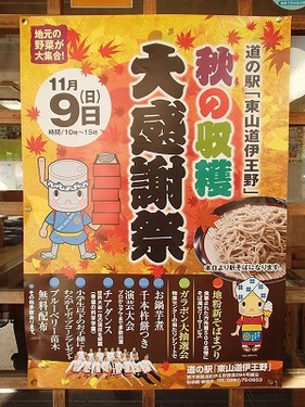 vol.32 秋の収穫大感謝祭!![]() ↓↓↓ 道の駅東山道伊王野で開催の「秋の収穫大感謝祭」!! 秋の実り、日頃のご愛顧に感謝して、そば祭りや餅つき、郷土芸能などの演芸大会などなど! 伊王野地区の秋の味覚・芸術が楽しめるイベントです☆ 伊王野地区と言えばお蕎麦が美味しいことで有名な土地! そば祭りでは、道の駅内にあるお蕎麦屋さん「水車館」のメニューをすべて『新そば』で味わえます!!! ![]() 粉はお店の裏手にある電動大臼で挽いた挽きたて! さらに店内にある工房での打ち立て! 注文を受けてから作り始める茹でたて! この3つのこだわりで人気を誇る水車館ですが、9日で新そば解禁☆ということでさらなる美味しさが期待できます!! 今日は特別に新そばの粉で打ったもりそばをいただきました~!! ![]() (本日は「天ざるそば」でいただきました☆)
