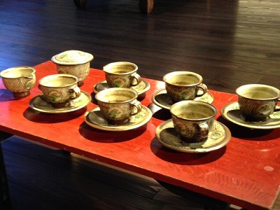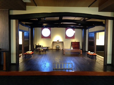 1990年代の作品で、大皿のシリーズの中の島岡氏の集大成ともいえる作品だそうです。 皿の内側全面に、お皿の中央へ向けて集中する縄目模様。 これが、島岡氏が人間国宝認定を受けた要の「縄文象嵌」です。 「こんなに大きなお皿、実際に家庭にあったらどんな風に使いますか?」と、館長と少々リポート中に盛り上がったり>▽<* 民芸品が中心ということで、館内には他にも日常でも使えそうな形のものがたくさんあります。 芸術品を身近に感じて、そういった想像力で楽しんでいただくこともこの美術館の魅力の一つであると、館長からお言葉をいただきました♪ そんな、日常を彷彿とさせるスペースを発見しました! ![]() 古民家の一室を再現した一角となります。