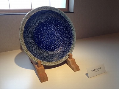 人間国宝の陶芸家・島岡達三氏の作品を展示する、県内初の美術館となります! 島岡達三氏は東京出身の陶芸家で、益子町で益子焼作家として活動されていました。 1996年(平成8年)に民芸陶器『縄文象嵌』という技法で人間国宝認定され、海外でも益子焼の代表作家として高い評価を得ています…! 館内には、島岡達三氏の全作品300余点の中から常時100点ほどを展示しています♪ 作品のほとんどが民芸品なので、大皿やコーヒーカップ、花瓶など、 ほとんど日常でなじみ深い形のものが並んでいます! そのうえ驚きなのが… 作品のほとんどが、オープン展示! ガラスケースなどに保管されていないので、作品の質感を直接見て、触って楽しめるんです!! なかなか無い展示方法で、とっても貴重な美術館です~! ![]() 本日は、新田昭代館長のご紹介で、『塩釉縄文象嵌大皿』という作品を拝見させていただきました!