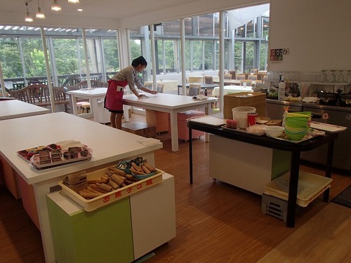 ↓↓↓ お菓子の城那須ハートランドといえば、みなさんご存じの「御用邸の月」を製造販売している施設です♪ 施設正面にあるのはお城のような大きな売店! お盆期間ということもあり、お土産コーナーにはたくさんのお客様で賑わっていました♪♪♪ 本日私がお邪魔した「那須 花と体験の森」は、その売店の奥に位置しています。 とても大きなガーデンハウスの中には魅力がいっぱい! 中央には「お花」を材料とした雑貨が作れるクラフト工房があります。 押し花で作るキャンドルやドライフラワーのブローチなど、手作り体験ができるんです♪ フェイクスイーツの材料もすぐ隣で販売されており、素敵なお見本がたくさん陳列されていました! 好きな方にはたまらないですね♪ そして、「リトルパティシエ教室」のキッチンも、同じフロアに設営されています! ![]() (きれい!)