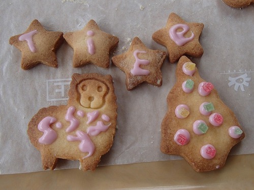 **************************** 1.エプロン、三角布を身に着ける 2.すでに用意されているクッキー生地(那須ハートランドで販売しているクッキーと同じものだそうです!!)を、クッキー型でくりぬく 3.オーブンで10分焼く 4.焼きあがったクッキーに、チョコペンやコンペイトウ、ビーズチョコでデコレーション 5.10分ほど冷やして、デコレーションが固まったら完成☆ 6.お持ち帰り用にラッピングしてもらえます☆ **************************** 誰でも簡単にクッキー作りが楽しめます♪ 時間も1時間~1時間30分で出来上がるので気軽にお越しいただけます。 かくゆう私は、実はクッキー作りは初めての経験! スタッフさんが丁寧に優しく教えてくださるので難しいことは一切無く、デコレーションもお絵かきをしている感覚で楽しめました♪ ![]() (片桐さんのお見本をチラリ!)