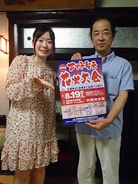 vol.19 芦野聖天花火大会!![]() 今年で63回目となるこちらの花火大会。 日本三所聖天(芦野・浅草・妻沼)の一つである三光寺の縁日に合わせて開催されます。 地元の皆さんにとっては夏の一大イベント、芦野の夏の風物詩とも言われています^^ 子供のころから芦野聖天花火大会を見続けてきた、実行委員長の安達雅夫さんにお話を伺ってきました♪ 安達さんにとって、芦野聖天花火大会は子供のころからの夏の楽しみ! 長年続けているうちに地元以外のお客さんも年々と増え続け、 近年では2万人以上、那須町の人口分のお客様が芦野地区に集まるそうですよ!!! そして今年の花火も、そんなお客さんの盛り上がりに合わせるように、 スターマインの中でもプレミアムなものが打ち上げられることになりました♪ 花火はおよそ3500発! お祭りの会場からも近い「御殿山」の上から打ち上げられます。 見ている人のほぼ真上に花開き、地響きが起きるほどの迫力が感じられるそうです! まさに身体で感じる花火! ひと夏の思い出に、ぜひ目に焼き付けていただきたいです☆ 歩行者天国となる会場の仲町通りには、およそ150店の露店が出店されます。 老若男女問わず様々な方が花火を楽しまれるそうですが、 実は三光寺はもともと縁結びの神様をお祀りしているということで、 カップルの皆さんが多くいらっしゃるそうですよ! これはデートにおすすめの花火大会ですね~♪ 芦野の古き良き街並みと、里山に咲き誇る花火! ぜひご家族と、お友達と、恋人と! 今年の夏の思い出に「芦野聖天花火大会」、いかがでしょうか? ********************************** 開催日:8月19日(火) ステージイベント:午後4時~午後7時30分 花火打上げ:午後7時30分~午後9時 ※荒天の場合は、翌日に順延(小雨決行) 会場:芦野地区仲町通り(花火打ち上げは芦野御殿山) ☆JR東北本線「黒田原駅」からバスで約15分、「芦野支所前」バス停下車、徒歩5分 ※芦野地区仲町通りは、花火大会当日午後5時から午後10時まで全面通行止めとなります。 駐車場:芦野小学校・芦野基幹集落センター(那須町芦野支所)・遊行庵・東陽中学校・秋桜斎場 ☆花火大会当日、午後6時~午後10時まで東陽中学校から三光寺間でシャトルバスを運行いたします。台数に限りがありますので、乗り合わせのうえご来場ください。 お問い合わせ:大会本部 0287-74-1819 ********************************** |