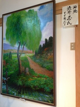 芦野地区のご出身の油絵画家で、過去に絵画教室を開いて指導していたこともある、 この道50年のベテラン画家さんです。 今回、揚源寺に展示しているのは、10年以上前に揚源寺に直々に寄付した、 「遊行柳」と「那須山遠望」の2枚。 どちらもとても大きく、120cm×100cmほどはありました◎ 「那須山遠望」は、小高い丘から遠く目線の先にあるなだらかな那須連山を描いたものです。秋ごろ描かれたもので、林の紅葉に温かみがありますね! 手前に羽ばたいている雉も存在感があります^^ ![]() そして、こちらが松尾芭蕉も訪れたといわれる那須町芦野地区の名所「遊行柳」です。