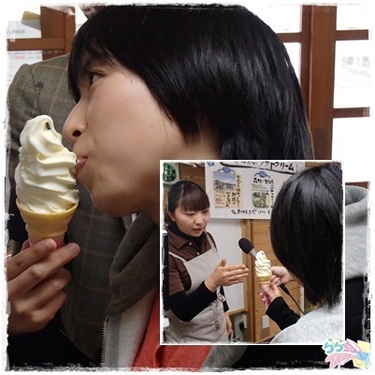 [ちょっと一息、那須Time]ちょっと一息、ソフトクリームTime♪![]() ![]() ①→那須りんどう湖 LAKE VIEWのソフトクリーム ②→森林ノ牧場のソフトクリーム ③→①と②がなんと左右半分ずつに!!! これまでミックスソフト(渦巻き状に交互に巻かれたもの)は 食べたことありましたが、この左右半分ずつというのは どうやって作っているのか摩訶不思議・・・。 これは左右別々に食べ比べしてみるっきゃありませんね! ![]() (小写真左:お話しいただいた 佐山菜津美さん)