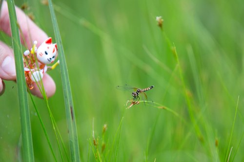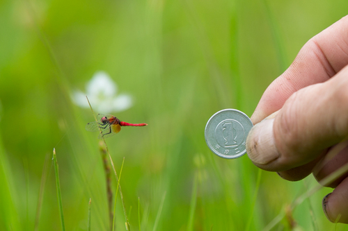寄居地区の「笹平湿地」だけ。 水や空気がキレイで、条件がそろわないとなかなか生息できないという とても貴重なトンボで、 栃木県では要注目種に指定されています。 長年は笹平湿地を管理し、 ハッチョウトンボを見守ってきたのが「寄居地区地域づくり委員会」のみなさん。 今回はそのみなさんに笹平湿地を案内して頂きながら、 ハッチョウトンボを探しました。 体長がわずか2cmなので なんせ見つけるのが大変です。 ![]() 湿地を覆うようにたくさん生えている草、