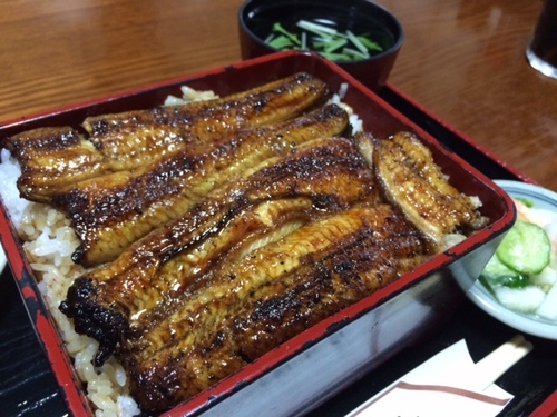 丁子屋![]() わたしが頂いたのは、なんと「特上 うな重」。ご飯が見えないくらいのうなぎが乗っている、だけではなく!