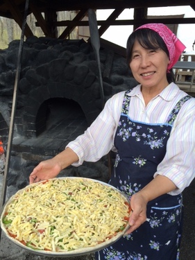 今回は直径45cm・・・ 人数によってももちろん変えられます。 そして、映画や絵本のワンシーンでした見たことないような鳥の丸焼き! これを、洋さんお手製の石窯でじっくり焼いてもらえるんです。 奥さんのたかこさんオリジナルのスパイスが塗られて 味付けが最高! 見た目も華やかだから子どもも楽しい、 大人もパーティーやバーベキュー気分で盛り上がること間違いなしです(^0^) ![]() 来た人たちも「お客さん」というより「参加者」になって、