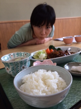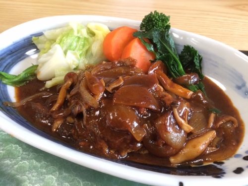 米は伊王野地域の中でも特においしいとされる「米沢米」を使っているんです。 ボリューム満点の定食が頂ける他、 なななんと! 定食を頼むとサラダバーからサラダ取り放題なんです!!! 伊王野のおいしい野菜が食べ放題なんて、 うれしすぎます! ![]() そして私は、以前電話でお話を伺った「和牛ハンバーグ定食」と