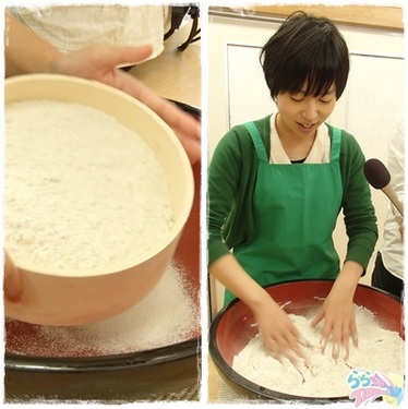 体験はもちろん、粉をふるって水を入れこねるところからスタートです。
