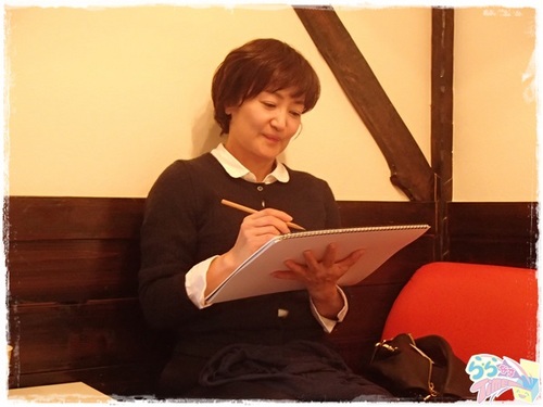 個人的には、スクリーンを眺めてイスに座っている黒い犬がものすごくカワイイと思います・・・♪♪ そして無理を言って私やららなすスタッフの似顔絵を即席で描いていただきました。 ![]() 本当にありがとうございます!!!