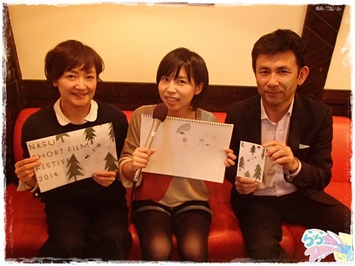 日本国内外から多くの個性的な作品がそろうこの映画祭。 最短で1分ほど、長くても30分以内の短編作品ばかりなので、 会場内を散策しながら色路な作品に出会うことができますね。 普段あまり見る機会のないショートフィルム、 映画館ではなく、那須の自然の中で楽しむことができるのも魅力の一つです。 そして今回の取材には、那須ショートフィルムフェスティバルのパンフレットの絵をデザインされた、 ![]() イラストレーターの米倉真万美さんにもお話を伺うことができました。