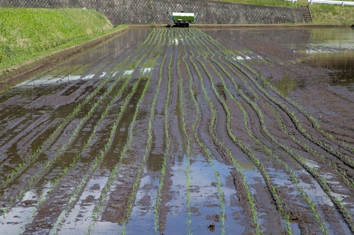 他のたんぼあちこちでも田植えをしていましたよ~ 農薬や化学肥料をできるだけ少なく抑えて作っているみどり米は、
