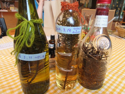 植物と、かわいい小瓶、そしてアロマオイル、ホワイトリカーを使って作る オリジナルのルームフレグランス。 今回私も体験させて頂きましたが、 モミの葉っぱをつけたホワイトリカーの香りの違いに 一番驚きました! 漬け込む期間によって、 熟成が進み、香りが変わってくるのが不思議~! ![]() 香りも、そして瓶に刺す枝なども全部自分で選ぶことができるので、