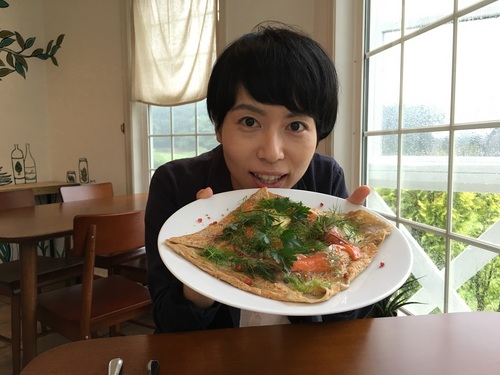 そしてスタッフの女性3人でやっているとてもオシャレなお店です。 店内は、ヨーロッパ、北欧のおうちのように白い壁と落ち着いた木のテーブル、 そしてテラス席があります。 テラス席は那須の森を目の前にしながらくつろげそうな雰囲気。 ![]() レストランクエリでは、フランス料理をベースに、 加川さんが長年学んできたアメリカの料理を融合させた、 「お酒に合うお料理」が中心なんです! 今回わたしはガレットを頂きましたが、 那須のハーブ、野菜、チーズ、魚、卵をたっぷりと使って仕上げたガレットは、 濃厚で風味豊か! ![]() ガレットの他にも、朝食メニューやディナーのお肉料理など、