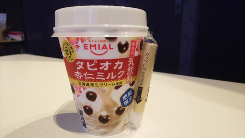 「タピオカ」をフィーチャーしていきます。 タピオカが日本で初めて流行したのは1992年なんですが、 このところふたたびブレイクしております。 そこできょうは…お手軽にコンビニで買える、 オススメのタピオカドリンクをご紹介! その名は ★「TAPIOCA TIME ROYAL タピオカ杏仁ミルク」(税込198円) ![]() 安曇野食品工房から発売中。