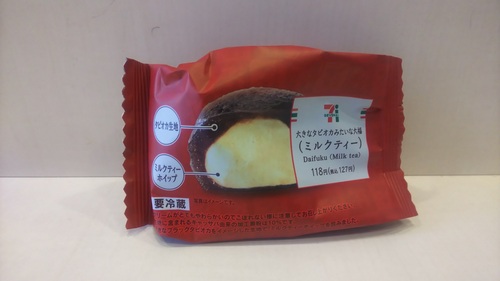 見た目や食感がタピオカのように「ぷるるん」としているまさに、 今風なスイーツ!シューの中でプリンを冷し固めて、 カラメルソースを詰めています。 言葉で説明するのは難しいので…まずはいただいてみましょう! 続いてはこちら・・・ ★「セブンイレブン 大きなタピオカみたいな大福(ミルクティー)」(税込 127円) ![]() 話題のタピオカをイメージした「和」のスイーツ。