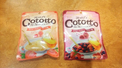 いろんな種類・味があって、食べやすいので、 ついつい食べ過ぎちゃう…という方も多いと思いますが… このグミ…日本での歴史は比較的浅くて、 1980年に明治製菓が発売した「コーラアップ」が初の製品なんだそうです。 「グミ」という言葉の起源は、 ドイツ語で「ゴム」を意味するGummi(グミ)から来ているようです。 1920年にドイツのハンス・リーゲルという方が、 果汁をゼラチンで固めたお菓子を作り、 ハリボー(HARIBO)社を設立して販売を開始したのが始まり。 当時のドイツでは強く噛む必要のある食べ物が少なくなり、 硬いお菓子を作ることで、子供の噛む力を強くし、 歯にかかわる病気を防ごうとしたためだそうです。 きょう紹介したグミはこちら… 今までにないほどの新食感がウリです。 ★「カンロ コトットグミ はちみつ仕立てのピーチ味/はちみつ仕立てのベリー味」(オープン価格 120円前後) ![]() こちらは今週火曜日、9月24日に発売されたばかりの新商品!