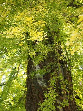 9階建てのビルと同じくらいの高さだそうです。 なにせ700年も前から生き続けている大公孫樹ですから。 葉っぱの美しさもさることながら それを支える幹の太さといったら!! 大人の男性が4人で両手を広げてぐるりとひとまき。 それくらいの太さ。 そうとう太いです。 枝垂桜といったように枝が 見ているひとを包み込んでくれるかのように しだれている場所もあります。 公孫樹の木というのは普通は下から上に向かって枝が伸びていくのですが 中には枝が下に向かって降りてきている「逆さ公孫樹」と呼ばれている公孫樹の木も全国にあって 樹齢を経た古い樹にこのような樹が多いそう。 遠くから眺めているのもいい気分ですが 近くでも見ていただきたい。 ![]() 近づくと まるで公孫樹に守られているという感覚に!!