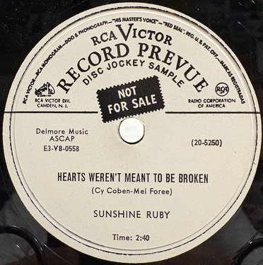 Hearts Weren't Meant To Be Broken / Sunshine Ruby (1953)