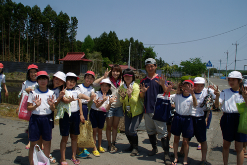 列になって、3~5本の苗を一束にして、手植えしました。 始めて田植えを体験する人もいれば、 「おじいちゃんの田植えを手伝ったことがあるよ~」 といった経験のある人もいましたが、 手植えはみんなにとってとてもいい経験と勉強になったと思います! たんたんマスターを目指すいつみんも、 手植えのコツをしっかり身に付けてこられたようです。 ![]() 小学校の近くに住む、小松さんをはじめ、 多くの方の指導のもと、今回の手植えが行われたのですが 小松さんも子どもたちのワイルドな手植えっぷりに、 満足していたようです(笑) 今後、みんなで稲刈りなども行うようですので、 またおじゃましたいと思います! ![]() |