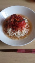 キムチトマトでピリ辛そうめん♪取材の帰りに、道の駅にしかたに立ち寄りました。 そこで気になるものを発見! ![]() じゃん! “トマトキムチ”です! まるごと一個トマトを使用しています。 2個入りだったので、斎藤さんと仲良く分けました(v^-^v) これはおそうめんにしたら美味しそうだ、 ということで、早速家で作ることに。 トマトを少し小さく切って乗せ、 白だしでいただきました♪ ![]() キムチと言っても、白菜ではなく、 大根、にんじん、玉ねぎ、ニラなんです。 キムチの味も辛め。 ジューシーで甘いトマトと、 キムチの辛さ、野菜のシャキシャキ感が見事にマッチ! 美味!! 途中、冷麺風にお酢を足してみたのですが、 これがまた美味しくて・・・。 これは絶対美味しいだろうなと踏んでいたので、 たくさん食べられるように、麺は2人前茹でておきました♪ 大正解♪ この夏、我が家の定番メニューになりそうです★ |