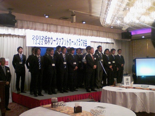 ウーヴァ納会へ サンタに会った~栃木ウーヴァFCの納会が 土曜日に栃木グランドホテル行われました。 私もお邪魔させていただきましたよ。 ![]() 選手のみなさんやサポーターのみなさんと たくさんお話をさせていただきました。 代表や監督、主将などみなさんの挨拶では、 来シーズンへの力強い豊富などを聞くことができました。 その中で挨拶に立った鈴木俊美栃木市長も 地域で応援していきたいとお話しされていました。 栃木ウーヴァも栃木市はもちろん、 県南のサッカーチームとして 今よりももっと多くの人が応援するチームに なっていけばいいなと思っています。 私は、今までいろいろな地域に住んできましたが、 (神奈川や長野や・・・) 地域にスポーツチームがあることは とっても貴重だと実感しています。 地域が盛り上がって、サッカーが盛り上がって、 地域が盛り上がって・・・と連鎖していけば いいですよね。 ちなみにJFLは、選手のみなさんと サポーターのみなさんの距離がとっても近いです。 応援していると選手のみなさんの魅力に 触れることができると思いますよ!! 抽選会で足立選手のユニフォームをいただきました!! やった~ ![]() 来シーズンは、このユニフォームを来て、