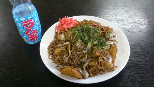 さっそく「じゃがいも入り焼きそばお願いしまーーーす(^^)」 来ました!!!「じゃがいも入り焼きそば」350円!!! ★じゃがいも入り焼きそばの味は ふつうの焼きそばより、しっかりとした濃いめのソース味!!!」 →こ・れ・が、クセになるおいしさ~~~!!!ふかしたひと口大のジャガイモの歯ごたえがぽっくりおいしく、ソースがぴったりマッチしています。そしてラムネがすごく合う! ![]() お店についてお伺いしたのは、