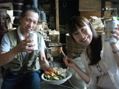 かぶ、にんじん、きゅうりに、おくら!!! ん!!?? おくら?!?! おくらもぬか漬けにぴったりと、萩原さん。 「ぱくっ」 お、お、お、おいし~~~い 0(^^)0 30切れぐらいはあったぬか漬けを、一気にいただいてしまいました☆ 味がまさに、絶妙でした。水っぽくもなく、塩気がつよくなく、まろやかで、とりこになるおいしさ。これも、「樽」が糠(ぬか)の水分をいい具合に吸収し、木ならではの"呼吸”をしているからこそ成せる味。びっくりして、感動しました。 「樽」に関心を持たれたかた「私も樽がほしい!樽で漬物がつけてみたい」という方は、ぜひ萩原さんの工房までお問い合わせください。 ![]() 萩原さんは、本当にやさしくて、腕の筋(すじ)が職人さんだなぁと見とれてしまう方で、しかもおいしいぬか漬けまでごちそうしてくださいました。
