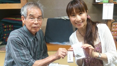 そして、 中学生が「お守りづくり」と、そのお守りのお渡しをしているのだそうです。 大平山にある「おおいたびかつら」という木の葉で、子育てのお守りを作り、当日和装をしてお客さんにお渡しします。(↑サイトウが持っている右側の葉っぱのようなもの、これがそのお守りです) 「おおいたびかつら」の葉は、やさしくまるい形で、それは赤ちゃんや子どもを抱くお母さんの姿に似ています。自然のもので作られたお守り…やさしく心を包み込んでくれます。 ぜひ今年、みなさんも百八灯流しをご覧になり、お守りを手にしてくださいね! ------------------------------