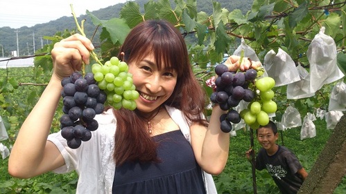 この爽快感は他では味わえないのでは?!!って思いました。 そしてスライダーからも見られた「ブドウ団地」。 スライダーの後に、みずみずしくておいしい ブドウをご紹介いただきました!☆(♡大平町にはおよそ60のブドウ園があって、北関東でも有数のブドウ団地なんです♡) 今注目は「シャインマスカット」 大きさは、直径2センチほど、種はなく皮ごとおいしく食べられるブドウです★☆★ 内から弾けんばかりの粒を手に取り、丸ごといただける感動、ぜひ味わってみてほしいです★(向かって一番右がシャインマスカットです) ![]() ぶどうの種類は巨峰や、ヒムロット、ピオーネ、ベリーエー、デラウェアなどたくさんの種類があり、10月中旬ごろまでおいしいブドウを味わうことができます。