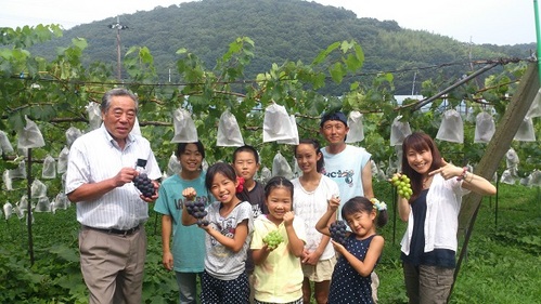 巨峰、ヒムロット、シャインマスカットです。 今回、全体を通して、お話をお伺いしたのは… ★かかしの里 太平山南山麓友の会理事長の小林明彦さん(こばやしあきひこさん)(写真向かって左が小林さん)です。 ブドウについては、杉田ぶどう園で杉田さん(にご案内いただきました。 (写真向かって右の男性がフジタさん) SPECIAL THANKS 大平町の小学生のみなさん&お母さん♫♬ ![]() |
