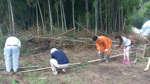 実は私・・・流しそうめん 初めてです! まずは「竹さがし」から(!) 竹やぶで作業されている方3人を発見\(^o^)/ ![]() 市内で竹をおすそわけしていただきました☆
