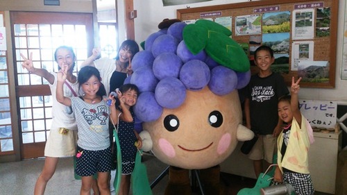 今週の一枚♪今週は、大平町の元気なみんなと一緒に 外で思いっきり遊んできました! かかしの里のローラースライダーに みんな+さーや+私の7人で乗ったのですが・・・ 私、途中で転びまして、 肘、太もも、足首を思いっきりすりむきました。 それもまた見事な転びっぷりで・・・ まぁ、転んだというよりは、 落ちたと言った方が正しいでしょうか。 階段の一番上から綺麗にズダダダーっとすべり落ちました。 あんなに思いっきり落ちたのは、たぶん小学生以来です。 それにしても、子ども達はみんな元気で、 スライダーへ向かうにも タタターッと走って行ってしまうんですね。 私たちなんて、ハァハァ言いながら やっと坂を登っている状態で、 子ども達の体の軽さと素早さに衝撃を受けました。 普段なかなか子ども達と過ごす機会がなかったので、 子ども達の元気パワーに驚きましたね。 素直で元気で優しくて・・・ その可愛い笑顔に日頃の疲れもすっかり癒された一日でした。 みんなありがとう! ![]() 大平町のマスコットキャラクター ぶどうの妖精“グレッピー”と♪ |