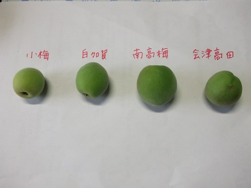 ひとつひとつ特徴があり、梅干しにしたり、梅酒にしたり、カリカリ漬けにしたり・・・用途はさまざまです。 ![]() 左から、小梅、白加賀、南高梅、会津高田♪