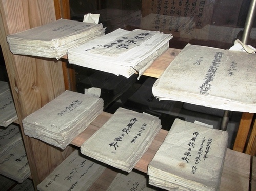 元は京都の三条で時の天皇に仕えていた武士でしたが、 後醍醐天皇が島流しになり、岡田家の祖先が浪人になって 流れ流れて栃木市へ来ることになったそうです。 巴波川を水源に農業をはじめるため、その近くの荒れ地を切り開きました。 栃木市で開墾した後、 もともと栃木市に住んでいた人たちとも親しくなり、 岡田嘉右衛門という代々岡田家で引き継いでいる名前が そのままその土地を嘉右衛門新田と呼ぶようになり、 現在は嘉右衛門町となりました。 岡田家には、歴史を感じられる資料がたくさんあります。 1つは、日記。 これは代官としての務めの一環として 記されたものだそうですが、 なんと146年分もあります。 地域の農民、漁民などのこと。 江戸とのやり取りなどが書いてあります。 中には、大奥にあがった岡田家の女性の話もあり、 その時の手紙、衣装などの品も残されています。 ![]() そして、例幣使街道が走る嘉右衛門町。