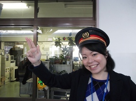 駅長さんに帽子を被らせてください!!