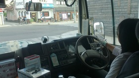 実は女性の運転手さんはお一人なのだそうで…それを「大変なのでは?」ときいたところ、「まわりのみんな、そしてお客さんもやさしくしてくれるんです」とイキイキ答えて下さいました\(^o^)/すてき。増山さんは、このボンネットバスを運転するのが夢で、バスを運転するための免許を取ったのだそうです!(運転がものすごく下手な私の憧れの的です☆) そしてこのバスでは、希望に応じバス乗車中に「町案内」をしてもらえるんです♪ ☆運転手さんに「観光しているので町案内をお願いします」と言うと要所要所で聞かせてもらえますよ☆ ![]() ボンネットバスは車高も普通のバスよりも低めなので、街並みが迫って見えて、そこもまたあたたかみがあります。