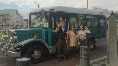 蔵づくりの街並みにもぴったりなレトロな「ボンネットバス」!